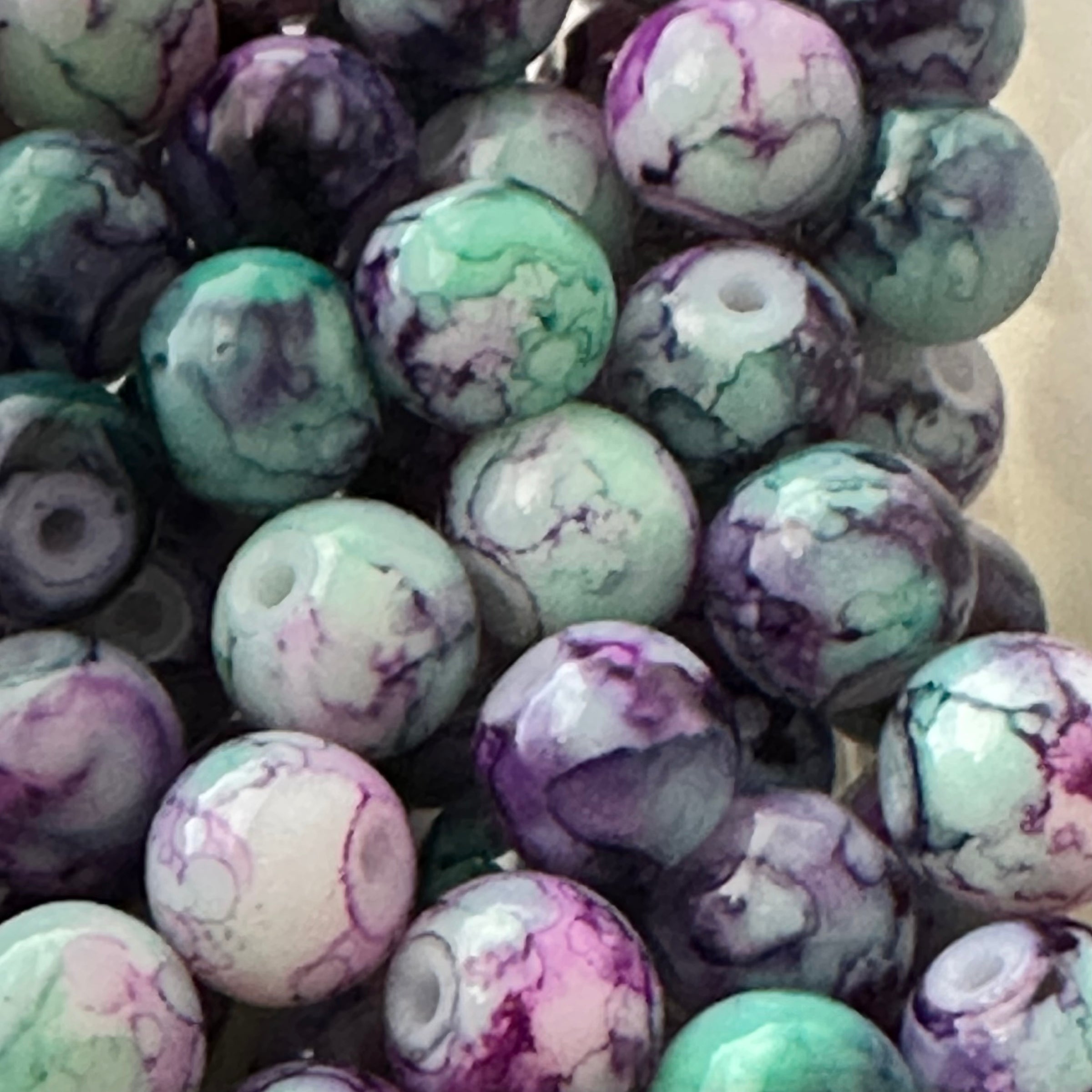 This rosary has been hand-crafted with 8 mm hand painted ceramic beads that are unique in it's pattern of blue and green flowers if you choose blue, purple and green flowers if you choose purple, or pink and green flowers with hints of blue if you choose pink.
