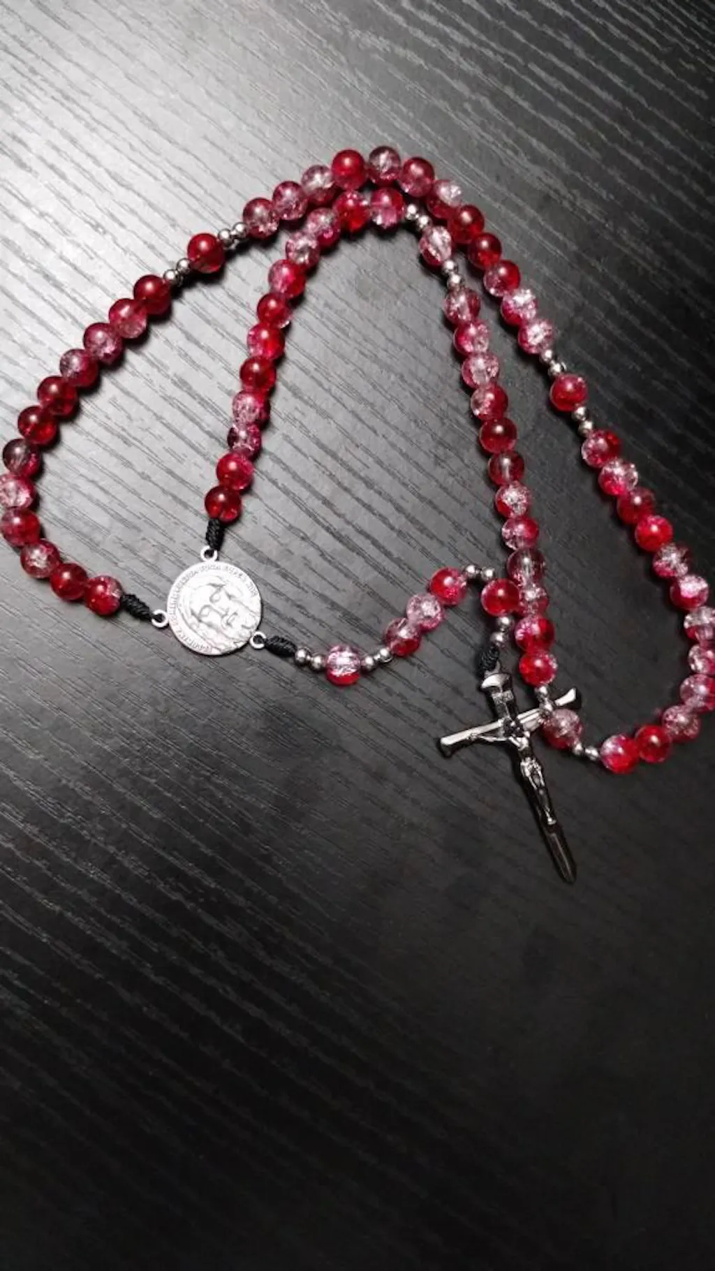 This chaplet of the Precious Blood of Jesus Christ begins with a nail crucifix. Consists of 5 decades of 12 beads for the prayers meditating on each of Jesus' five wounds.